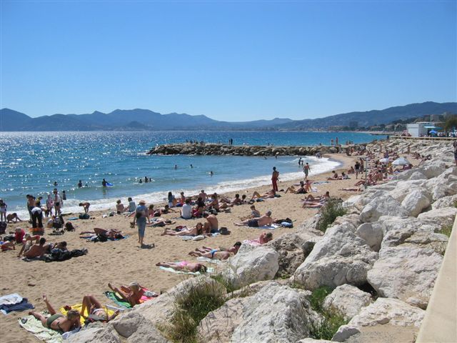 Nach einer Besch... fahrt von Nizza nach Cannes mit viel Stop and Go Verkehr endlich sehen wir den Beach von Cannes